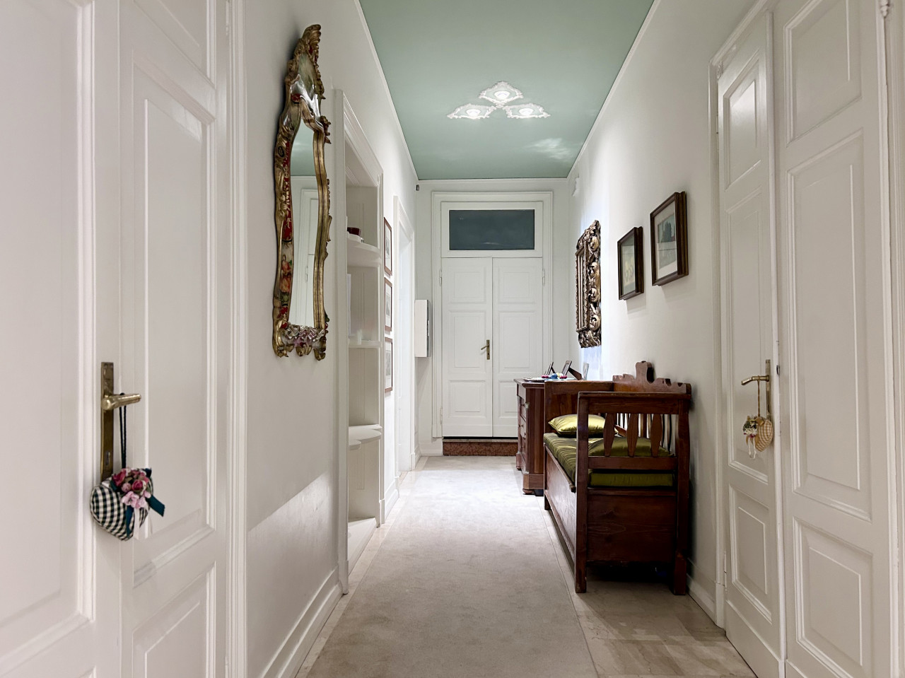Le finiture di pregio e i soffitti alti valorizzano gli ambienti, ampi e luminosi.