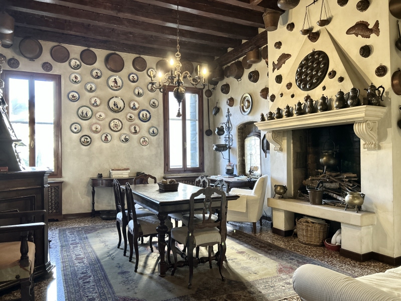 Antiche travi in legno con motivi decorativi originali, soffitti molto alti e una luminosità naturale che valorizza ogni ambiente: questo palazzetto indipendente, disposto su tre livelli, conserva intatta l’atmosfera raffinata delle epoche passate pur offrendo tutti i comfort moderni.