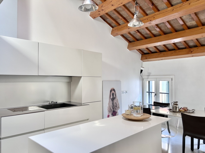 La purezza delle linee contemporanee, il candore del bianco materico e la raffinatezza di finiture pregiate dell’appartamento, ristrutturato completamente nel 2005, incontrano il fascino senza tempo dell’antico palazzo nobiliare che lo ospita. Un perfetto equilibrio tra eleganza storica e funzionalità moderna.